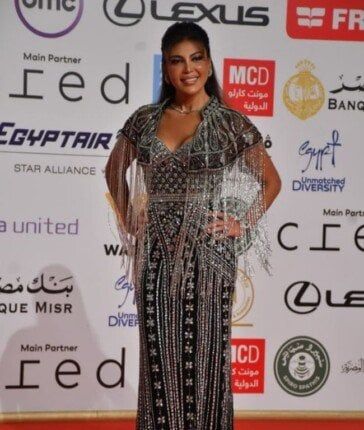 وتألقت ريهام حجاج خلال فعاليات حفل افتتاح مهرجان القاهرة السينمائي بفستان أسود مرصع بالكريستالات الفضية، جاء بتصميم ضيق مع ألوان لامعة على الأكتاف، أضفت حركة وأناقة على الإطلالة، كما اعتمدت تسريحة شعر نصف مرفوعة ومكياج قوي أبرز جمالها وحضورها اللافت على السجادة الحمراء.