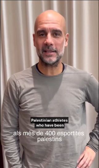 وقال بيب جوارديولا في رسالته: "برشلونة مدينة السلام، ستستضيف هذا الثلاثاء على الملعب الأولمبي مباراة بين منتخب كتالونيا ومنتخب فلسطين، إنها أكثر من مجرد مباراة؛ إنها صرخة تضامن تكريمًا لأكثر من 400 رياضي مات في غزة."