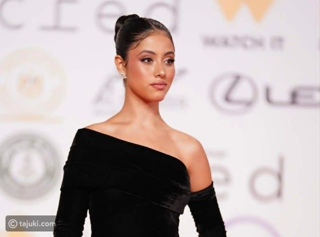 في إطلالة مثلت التجسيد الحرفي لثنائية الأبيض والأسود، ارتدت سلمى أبوضيف فستانًا أسود مرصعًا باللؤلؤ الأبيض. لتعزيز جمال هذا التناغم، كان الكحل الأسود هو اللمسة الجمالية البارزة. يتم تطبيق الكحل الأسود بشكل سميك ودرامي (كعيون القطة أو الآيلاينر المجنح)، سواء داخل العين أو على خط الرموش العلوي، لزيادة حدة التباين مع بياض اللؤلؤ وكسر هدوء اللون الأسود.