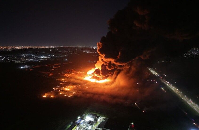 وعلى الفور، انتقلت فرق الإطفاء إلى موقع الحادث للسيطرة على الحريق الهائل الذي التهم مساحة واسعة، حيث تظهر اللقطات الجوية أعمدة دخان كثيفة تتصاعد من المكان. وأصدرت السلطات تحذيرات للسكان تطالبهم بإغلاق نوافذ منازلهم تحسبًا لأي انبعاثات سامة محتملة.
