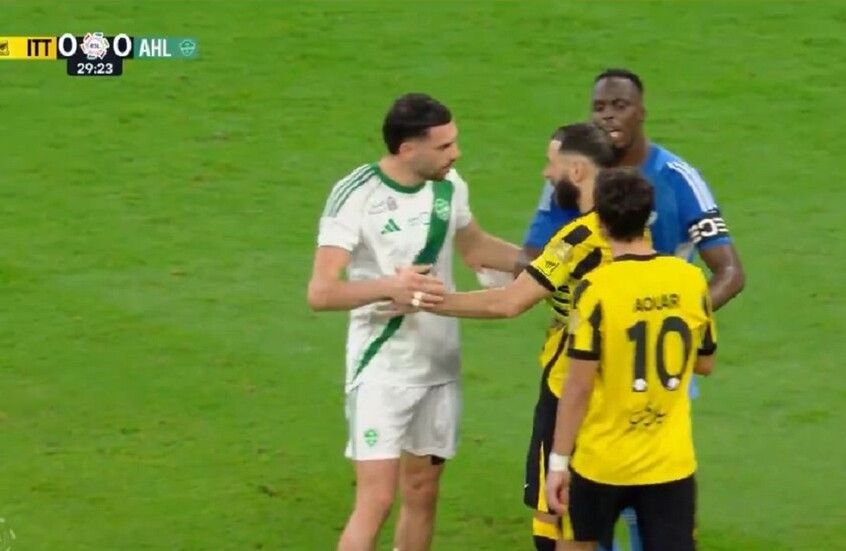 شهدت مباراة "الديربي" بينفريق الاتحاد وضيفه الأهلي مساء اليوم السبت، في إطار مباريات الجولة الثامنة من دوري "روشن" السعودي لكرة القدم للمحترفين، مشادة حادة بين لاعبين من الفريقين.