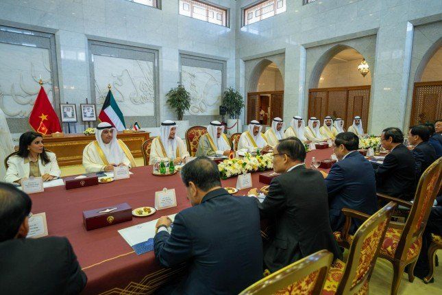المصدر 24 - عقد سمو الشيخ أحمد عبد الله الأحمد الصباح رئيس مجلس الوزراء في قصر بيان اليوم جلسة مباحثات رسمية مع معالي رئيس وزراء جمهورية فيتنام الاشتراكية الصديقة فام مينه تشينه والوفد المرافق له.