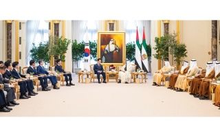 جاء ذلك خلال جلسة المحادثات الرسمية التي عقدها سموه في قصر الوطن، مع الرئيس الكوري الذي قام بـ«زيارة دولة» إلى دولة الإمارات.