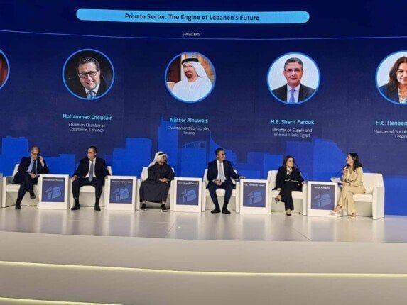 وشهدت الجلسة حضور عدد من الوزراء والمسؤولين اللبنانيين وقيادات القطاع الخاص، من بينهم حنين السيد، وزيرة التنمية الاجتماعية اللبنانية، ومحمد شقير، رئيس مجلس إدارة غرفة التجارة اللبنانية، وسمير عساف الخبير المصرفي.