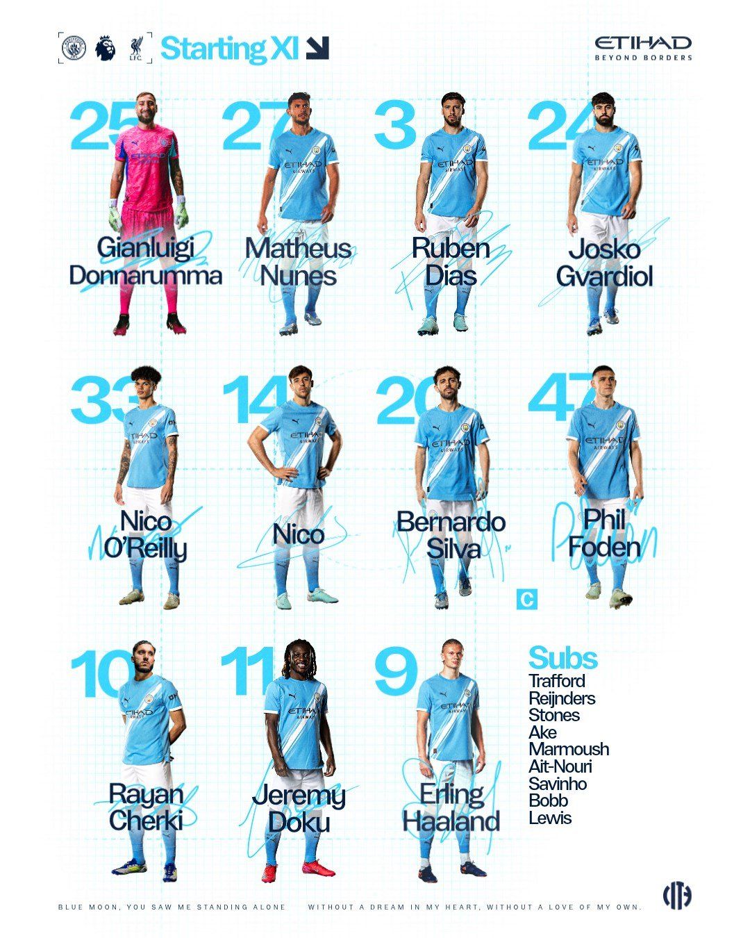 - خط الهجوم: شرقي، إيرلينج هالاند، وجيريمي دوكو