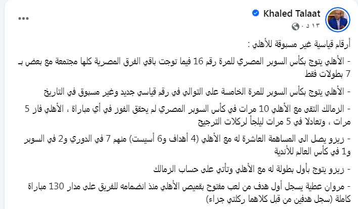 خالد طلعت الناقد الرياضى وعبر صفحته على منصة فيس بوك كتب معلقاً :