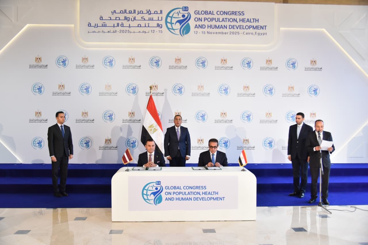 المصدر 24 - وقعت وزارة الصحة والسكان، مذكرة تفاهم مع دولة لاتفيا، بشأن التعاون في مختلف مجالات الرعاية الصحية، وذلك بحضور الدكتور مصطفى مدبولي رئيس مجلس الوزراء، ضمن فعاليات اليوم الأول من النسخة الثالثة للمؤتمر العالمي للسكان والصحة والتنمية البشرية، والذي يُقام خلال الفترة من 12 حتى 15 نوفمبر 2025.